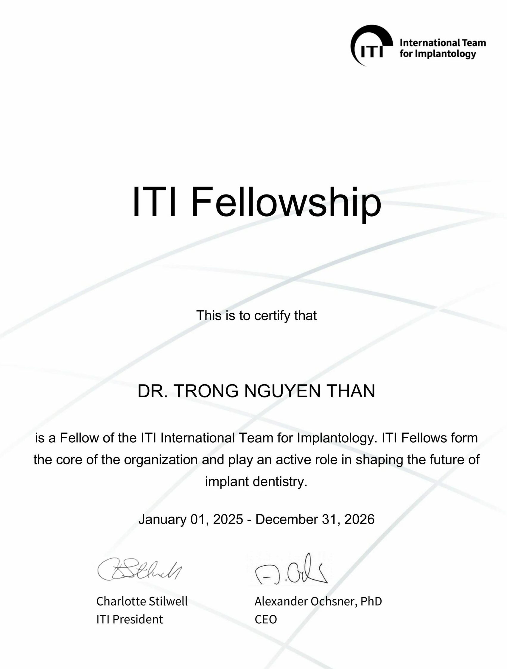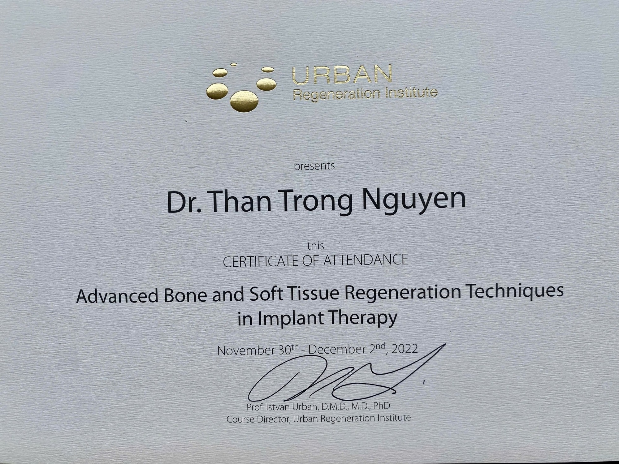 - Chứng chỉ đào tạo tại nhiều Hội nghị Implant tại Việt Nam và Thế Giới (Mỹ, Áo, Hàn Quốc, Trung Quốc..)
